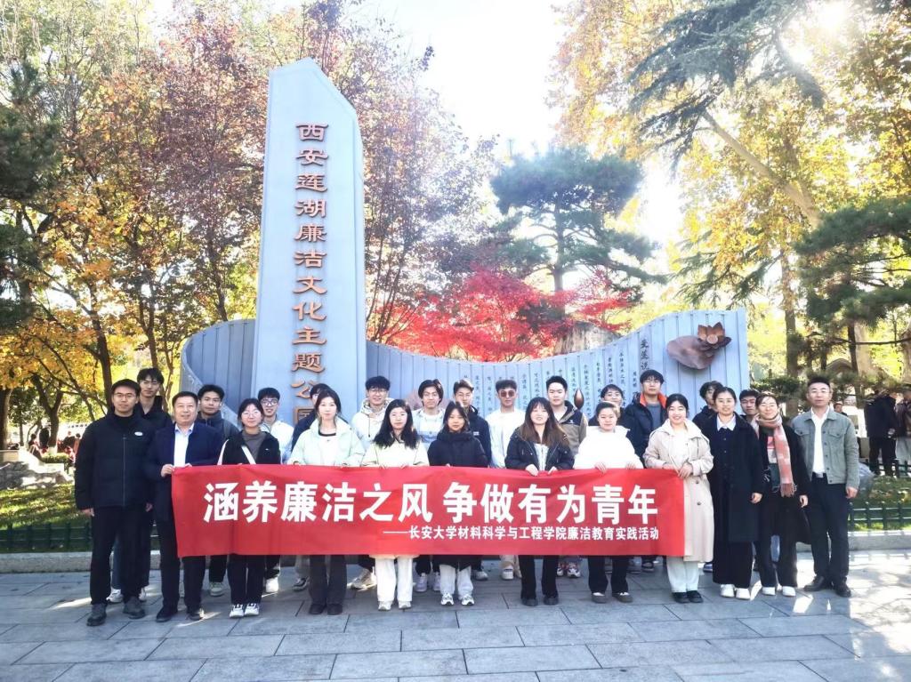 为全面推进新时代廉洁文化建设,夯实大学生清正廉洁思想根基,11月29日,材料学院组织2024级本科生骨干及入党积极分子代表20余人赴西安莲湖廉洁文化主题公园和杨虎城纪念馆开展实践研学。学院党委副书记、纪委书记宁育国,学院分纪委委员、党委秘书和辅导员参加了活动。在西安莲湖廉洁文化主题公园北门广场爱莲说雕塑下,师生集中深刻体悟莲花所代表的“出淤泥而不染”的廉洁寓意,学院师生依次参观了红莲丹心、莲子家训、莲语诗堤、...