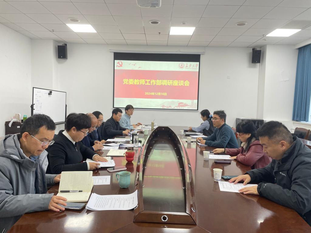 12月16日,党委教师工作部部长陈华鑫一行到我院就教师思想政治与师德师风建设等工作进行调研交流。学院党委书记王振军,院长肖月,院党委副书记刘珺,副院长徐义库、郭亚杰,党委委员耿九光和教师代表邓娟利、周亮参加调研座谈。王振军结合教育部和学校工作要求,将学院落实主体责任,通过常态化开展政治理论学习、定期召开师德师风建设研讨、建立荣誉体系激励机制、加强先进典型选树和开展“荣休·传承”特色活动等措施协同推进学院教师思想政治和师德师风建设工作高质量发展等情况进行了汇报交流。...