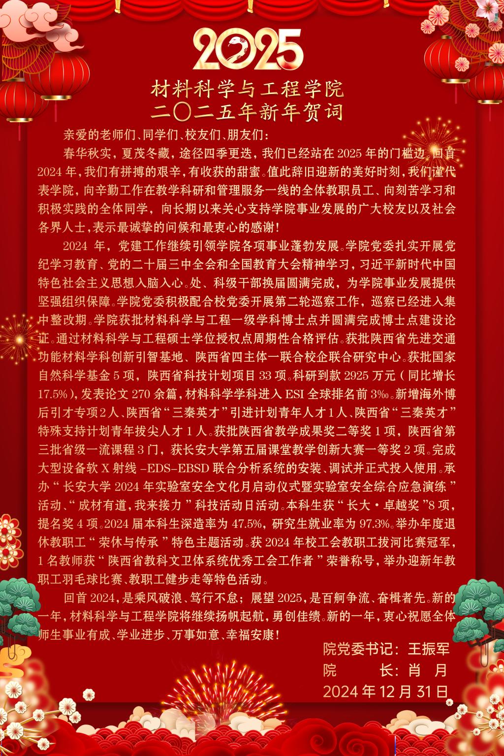 1月14日上午,材料学院2024年度全体教职工大会在北校区图书馆西侧裙楼报告厅举行。学院全体党政领导及教职员工参加大会,大会由学院党委副书记、副院长宁育国主持。党委副书记、副院长宁育国主持大会会上,院长肖月以“士争凑燕支撑学院高质发展 凝心聚力走好二次创业之路”为主题,用关键的“数字”全方位地总结了学院在党建工作、师资队伍、平台建设、学科建设、学生培养、工会事务以及博士点建设等领域的发展成果,肯定了学院科研与育人的显著成效。...