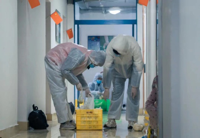 17:00,又到了吃饭的时间,2019级党支部的党员在支部书记史珂的带领下,又一次起航,他们的任务是将食物运送到各个宿舍门口。截止目前,99名志愿者已经连续工作了15天,每当他们脱下密不透风防护服的时候,头发就像被水洗过一样,衣服也变得潮湿。晚餐只是他们工作的一个缩影,他们几乎每天早上6点多天刚蒙蒙亮时起床,经过简单的洗漱,就前往指定地点结合,直到晚上8点才能结束一天的工作。在这场没有硝烟的战争中,志愿者们前赴后继,冲锋陷阵,内心充斥着火热的信念。有一名党员说:疫情在哪里,党员就战斗在哪里;哪里有困难,哪里就有党员站在一线。他们动情地说道,这是我热爱的活动,这是我热爱的学校,yl7703永利集团就是我的家,我愿意贡献自己的绵薄力量去保护它,让它重焕生机,越来越好。