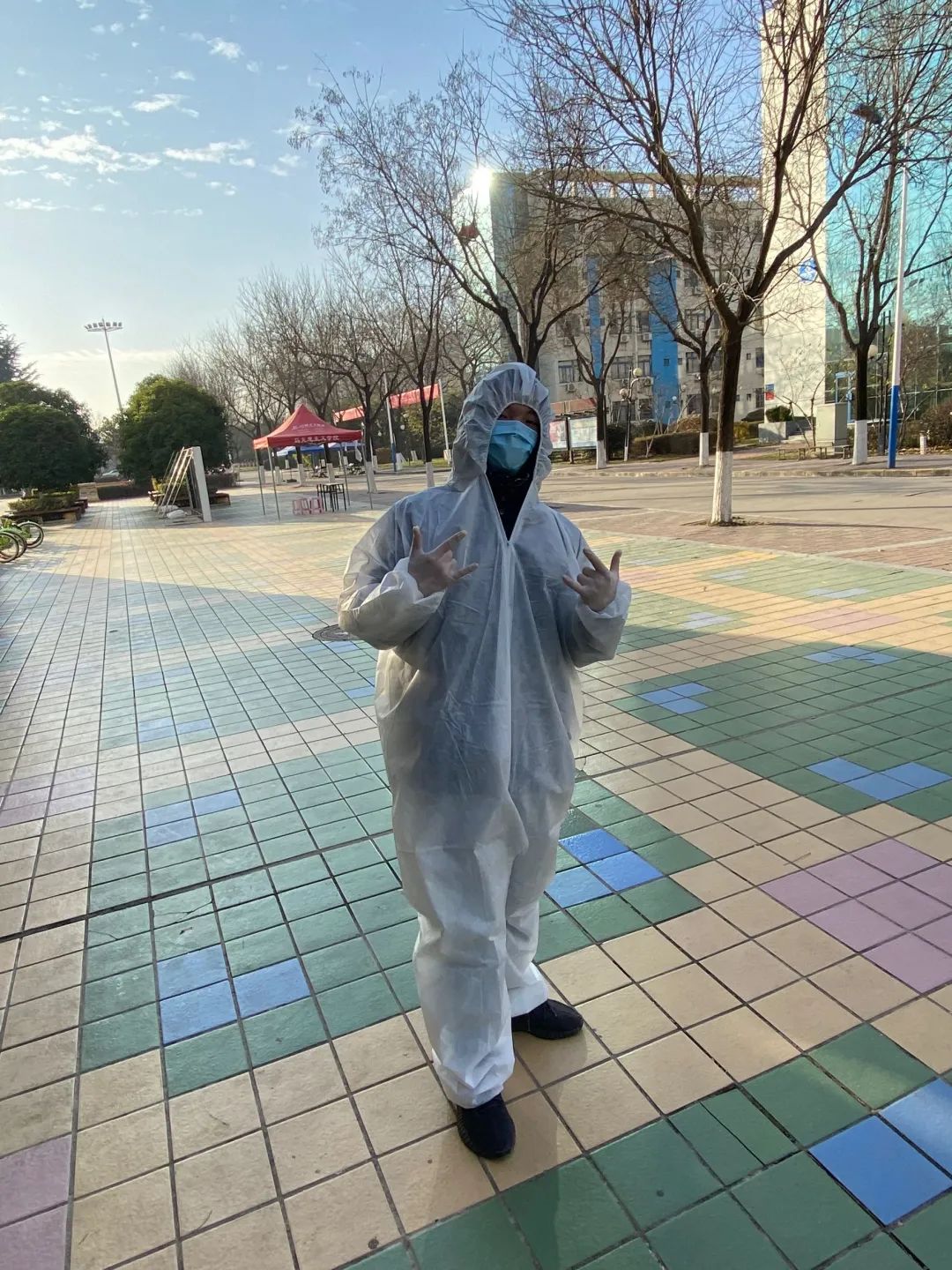 疫情当下,每个人都是自己的英雄。志愿者们还是挺不容易的,他们顶着星夜出发,为了及时将饭菜送到同学手中,一刻也不停歇,因为穿着防护服,真的是每个人都是一身汗,也希望同学们尽量担待一些。同学们在宿舍也要注意劳逸结合,找到适合自己的方法锻炼。我也感谢那些为同学们默默付出的食堂叔叔阿姨、星夜守护的医护人员、奋战一线的老师、穿着防护服的楼管阿姨们,你们是好样的!