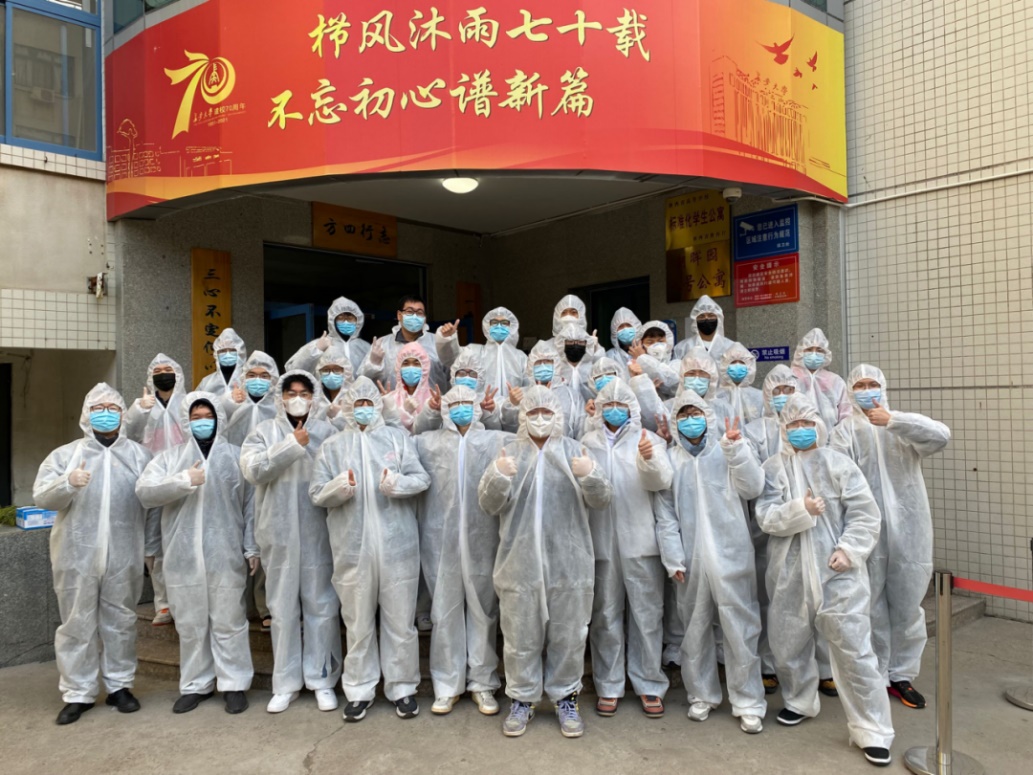 作为志愿者,穿上防护服的时候觉得肩上担负了很重的责任,送饭的过程确实很累,30多人要分发1000多份饭,但是看到同学们拿到饭时开心的表情和一声声谢谢的时候,心里还是很开心的。特别是看到全校有那么多的同学和我在做一样的事情的时候,会情不自禁的自豪的喊出“请党放心,强国有我们!”