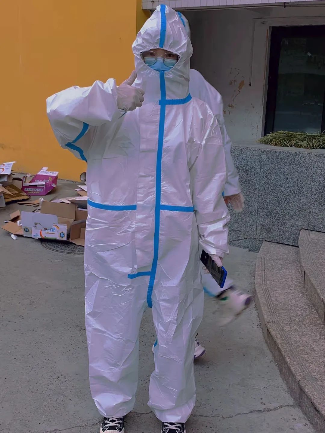 疫情突如其来,看到老师招募志愿者的消息就很心动,最惊喜的是女生也可以贡献自己的一份力量,自己没有理由退缩,毫不犹豫地就报名了。穿上防护服,没过一会儿就非常闷热,当时就想着那些医护人员,工作人员一整天都穿着这套衣服该有多辛苦啊。对他们的敬佩和感激之情又进一步加深了。爬楼、搬饭、挨个门发餐,不断的弯腰,蹲起,敲门,虽然有一点累,但是看到门上面写的“志愿者辛苦了”又觉得每一次坚持都是值得的,顿时感觉浑身充满了力量。有时候搬不动了就抬头看看其他志愿者,他们都在一起努力,自己没有理由懈怠。疫情很可怕,但是我们所有人都团结互助,并肩奋斗,我们一定会打赢这场疫情阻击战。