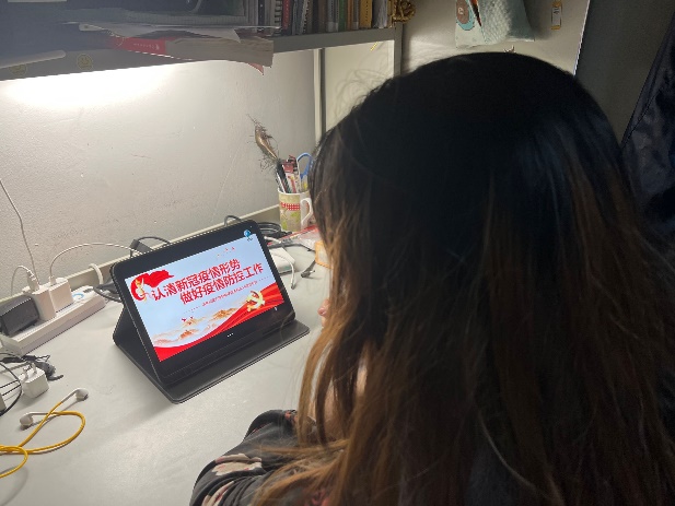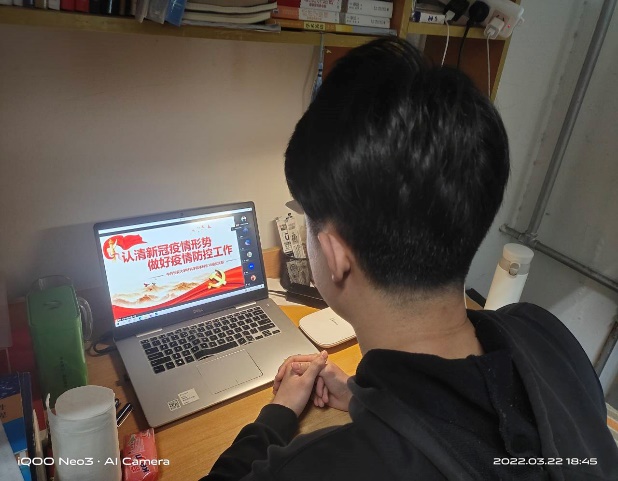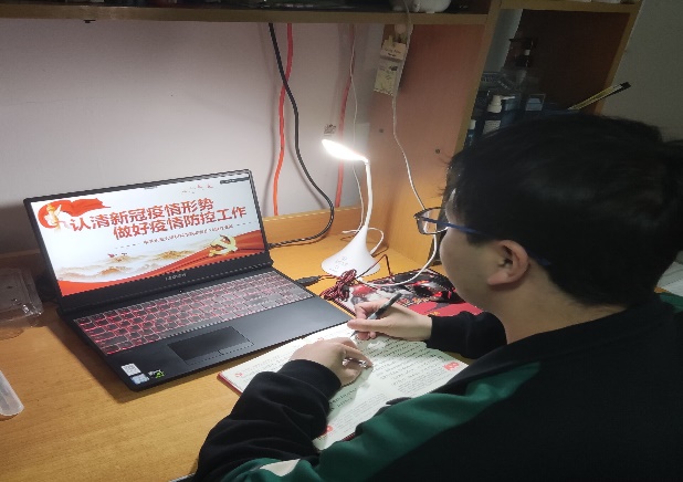 李云龙谈到:我们要深刻学习习近平总书记的重要讲话精神。作为学生党员,在校内要坚定信心、决心,自觉学习和宣传学校疫情防控政策,加强舆论引导,关心身边同学动态,努力发挥党员的先锋模范作用,营造良好防控氛围。