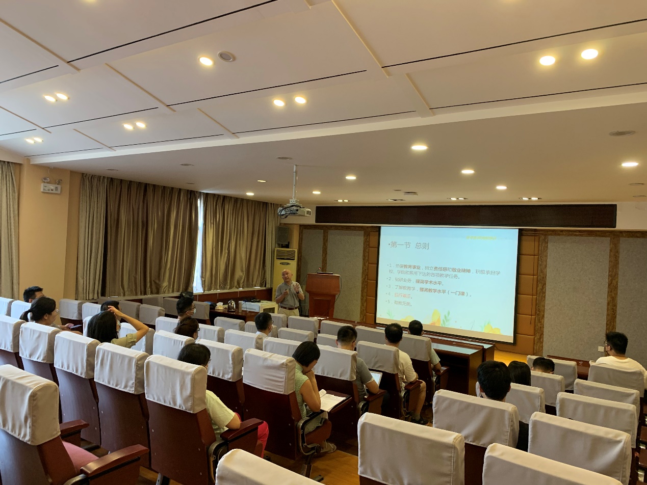 张晓峰老师针对新时代高校教师职业行为要求以及青年教师授课过程中存在的典型问题,并结合自己的多年的教学经验,从授课态度、敬业精神、师德师风、扎实学识、考评公正、言行雅正、文化传播、道德修养、知识更新、备课要领等多个重要方面开展了生动而具体的讲授。主要要点包括:坚决贯彻党和国家的教育方针,不得在课堂上有不利于学生健康成长的言行;树立崇高职业理想,做学生良师益友;备课时熟悉教学内容,将知识点、理论、推导和应用串联起来,并进一步升华教材内容,做到科研反哺教学;加强与学生的互动,将课堂讨论常态化;教学及考核过程中要确保公平公正,维护正义;注重教师自身的文化和道德修养,塑造教师人格魅力。张老师的讲授内容丰富、旁征博引、深入浅出,有很强的感染力,使与会的青年教师们受益良多。