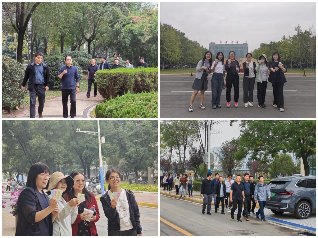 当天下午,健步走活动在北校区致远大厦学院南门拉开帷幕。活动路线自渭水校区学院南门出发,由学校西区向东经过学校南门,向北沿问远路返回,全程约五千米。教职工们在紧张的工作之余置身校园、放松身心,一张张笑脸热情洋溢、朝气蓬勃,大家精神抖擞地行走在秋意渐浓的渭水校园,展现出我院教职工团结进取、奋发向上的精神风貌,成为了秋日里一道亮丽的风景线。