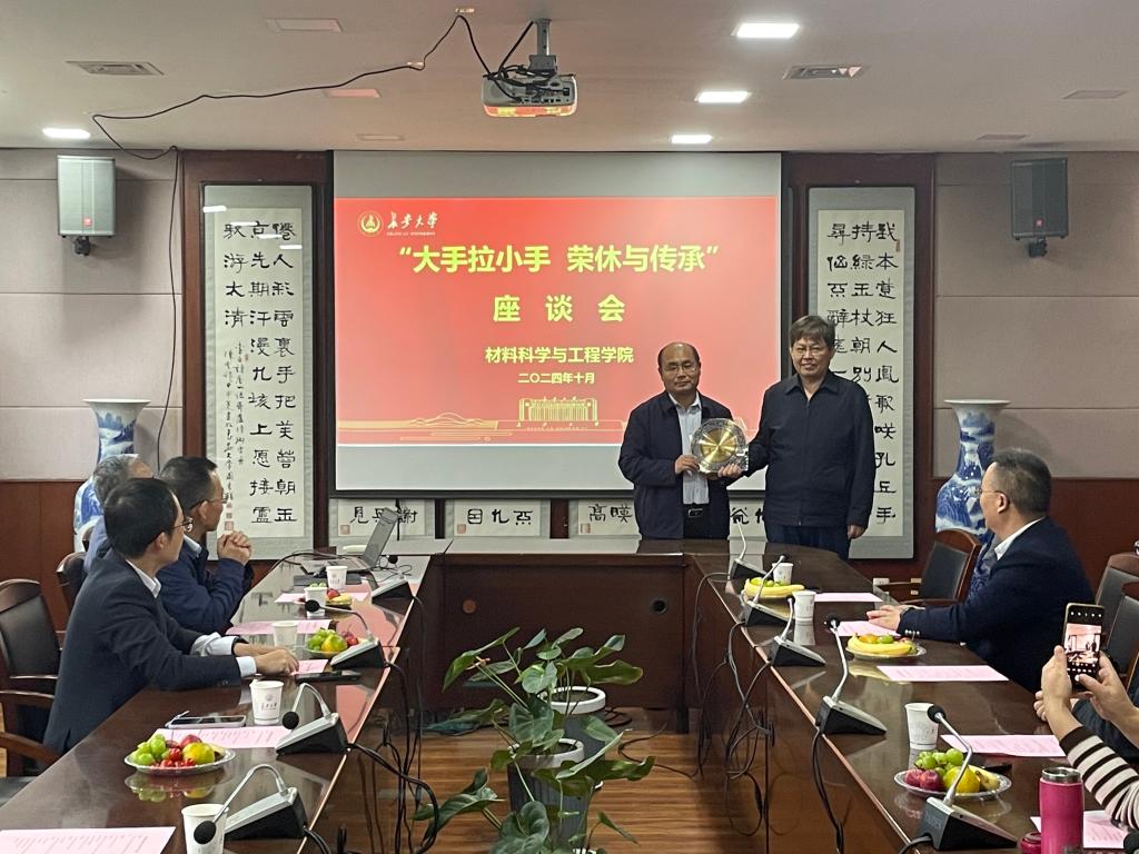 10月20日下午,材料学院在南校区北院学术交流中心第五会议室隆重召开了2024 年度“大手拉小手 荣休与传承”主题座谈会,热烈欢送无机非金属材料与工程系退休教师周振君教授,并隆重欢迎2024年度入职新教工。学院党政领导、退休教师周振君教授、2024年度新入职教工及部分师生代表参加了活动,座谈会由学院党委副书记宁育国同志主持。