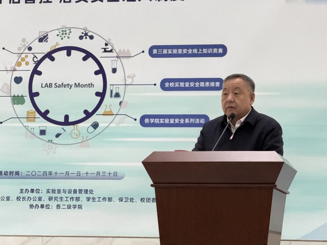 启动仪式上,陈建勋代表学校实验室安全工作领导小组致辞并宣布“实验室安全文化月”正式启动。他指出,实验室安全文化月的开展是学校落实实验室安全管理责任、强化实验室安全教育、提高师生安全意识和防范能力的重要举措。希望全校师生积极参与、认真学习,以更加扎实的安全知识和更高的安全意识共同推动校园实验室安全建设,打造平安、和谐的校园环境。