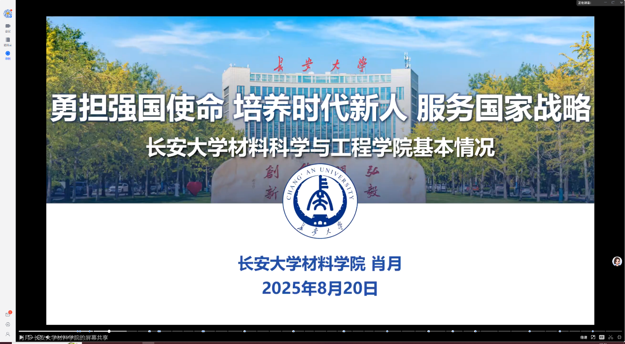 8月20日下午,材料学院成功举办2026年硕士研究生招生宣传系列活动之“院长云端说”、“科研团队在线直通车”。本次活动吸引了众多有志于报考和推免yl7703永利集团材料学院研究生的学子参与,为他们深入了解学院及招生政策提供了重要平台。学院党委书记王振军、院长肖月、党委副书记刘珺、副院长郭亚杰,十个科研团队责任教授,以及百余名学生参加了本次活动。讲座由学院研究生培养与管理主管杨树主持。