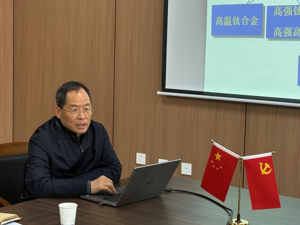 为搭建产学研协同创新平台,推动党建与业务深度融合,11月4日,材料成型及控制工程系党支部邀请全国劳动模范、西北有色金属研究院副总工程师赵永庆在北校区材料学院401会议室为支部党员作专题报告。本次专题报告由材料成型及控制工程系党支部书记周亮主持,学院院长肖月,学校教务处副处长陈永楠,学院党委副书记宁育国,副院长徐义库、郭亚杰出席,材料成型及控制工程系党支部全体教师党员参加。