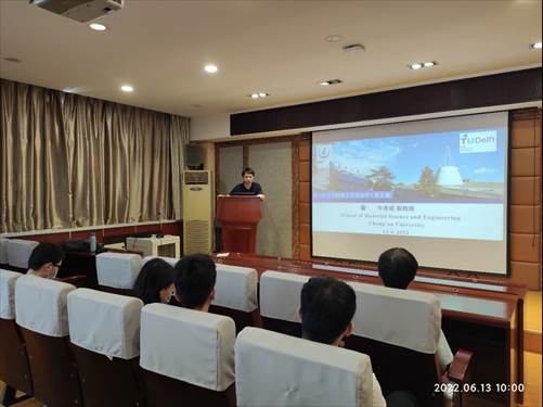 2022613日上午10:00-11:30,我院赴荷兰代尔夫特理工大学(Technische Universiteit Delft)访学教师牛冬瑜副教授,在校本部西院第五教学楼二楼报告厅就国外见闻及研修成果进行了交流汇报。报告会以线下和线上讲座的形式同时开展,报告会由材科系主任耿九光老师主持,部分学院教师和相关硕博研究生参与了本次交流报告会。