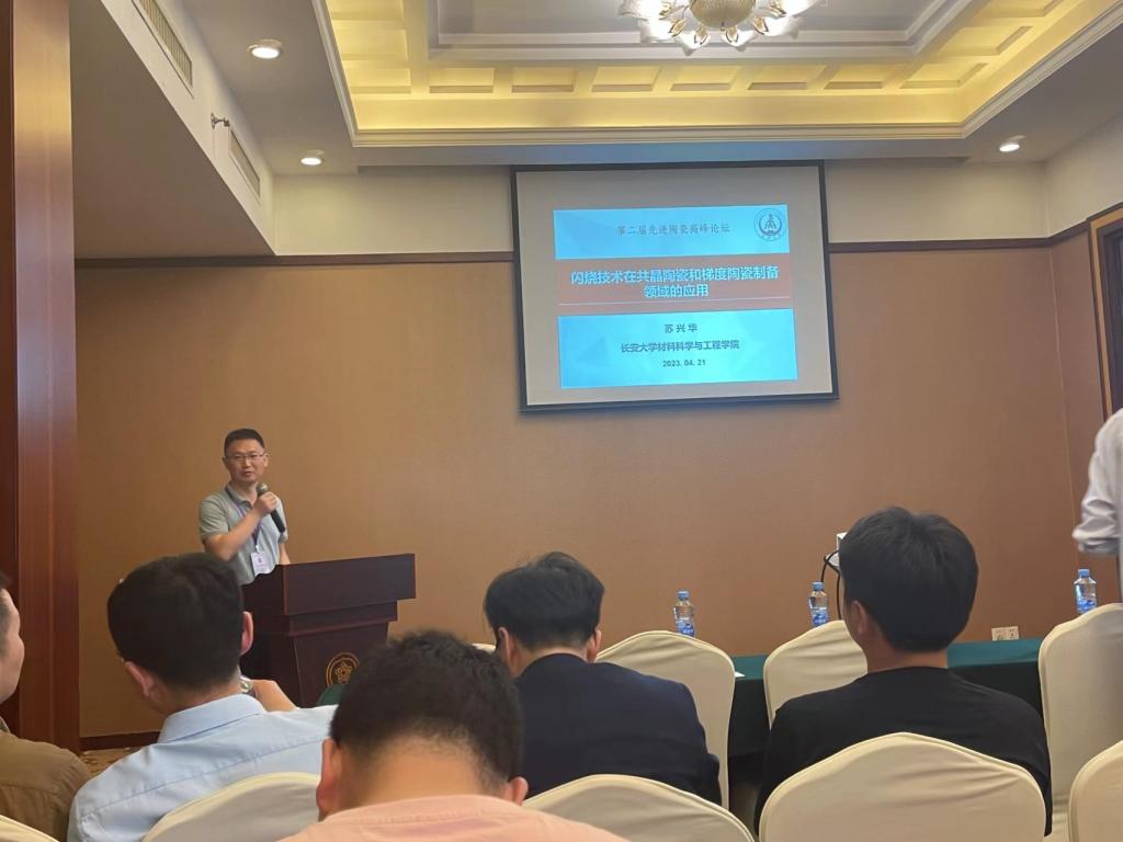 在“新型工艺技术”分会上,苏兴华教授做了题为“闪烧技术在共晶陶瓷和梯度陶瓷制备领域的应用”的邀请报告,分享了课题组在闪烧技术领域的最新研究成果,并与相关专家进行了深入交流。通过此次会议,扩大了我院的知名度。