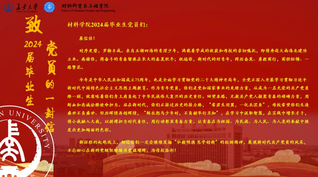 致2024届毕业生党员的一封信