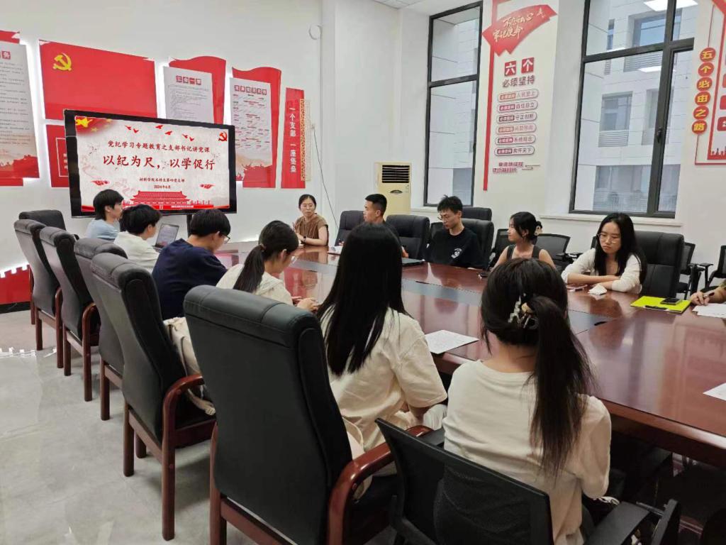 为深入学习贯彻习近平总书记关于党纪学习教育的重要讲话和重要指示精神,教育引导学生党员学纪、知纪、明纪、守纪,进一步加强党的纪律建设,增强学生党员纪律意识和规矩意识,材料学院本科生第四党支部于6月24日下午开展了支部书记讲党课专题活动。本次党课由支部书记肖雅蕊主讲,支部全体成员参加此次学习。
