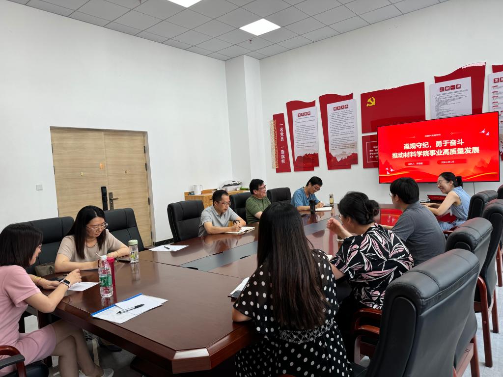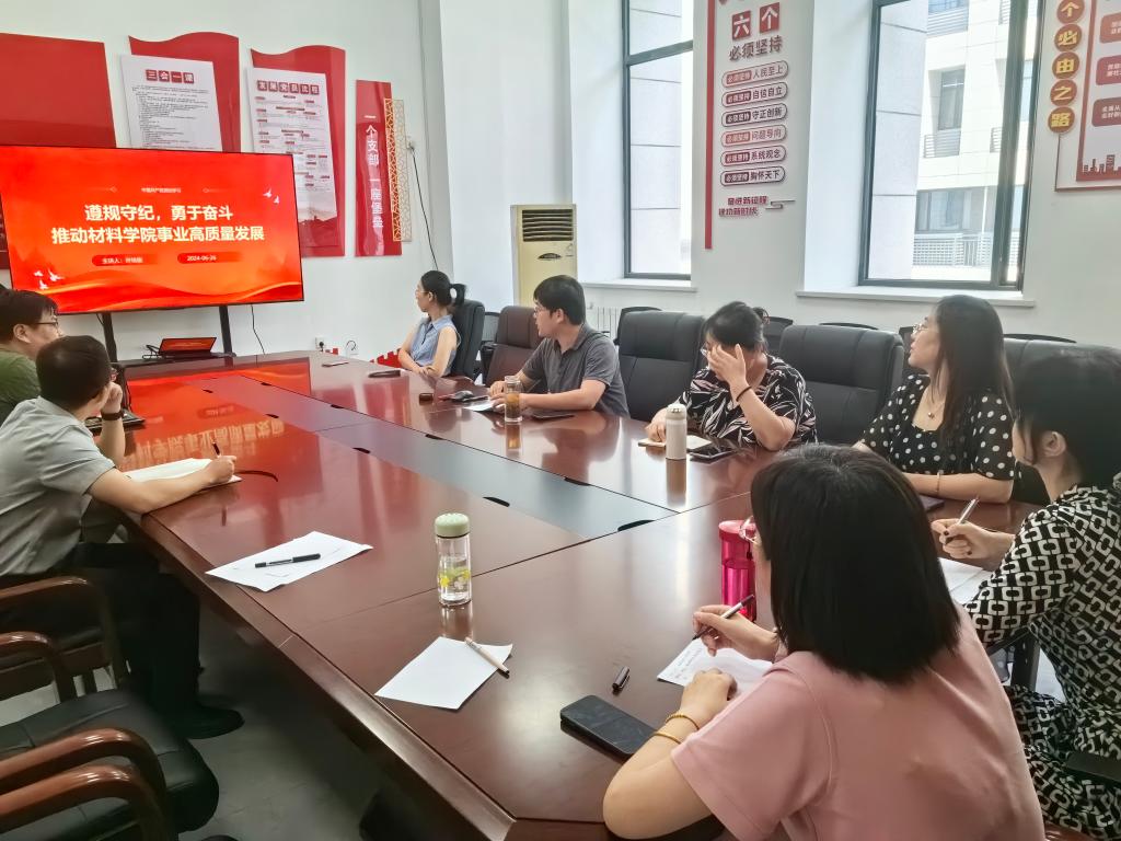 2024年6月26日上午,我院高分子材料与工程系党支部在北校区致远大厦党建活动室开展了党纪学习教育专题活动暨支部书记讲党课活动。专题活动由党支部书记许培俊同志主持,yl7703永利集团院长肖月同志列席,高分子材料与工程系党支部全体无课教师参加。
