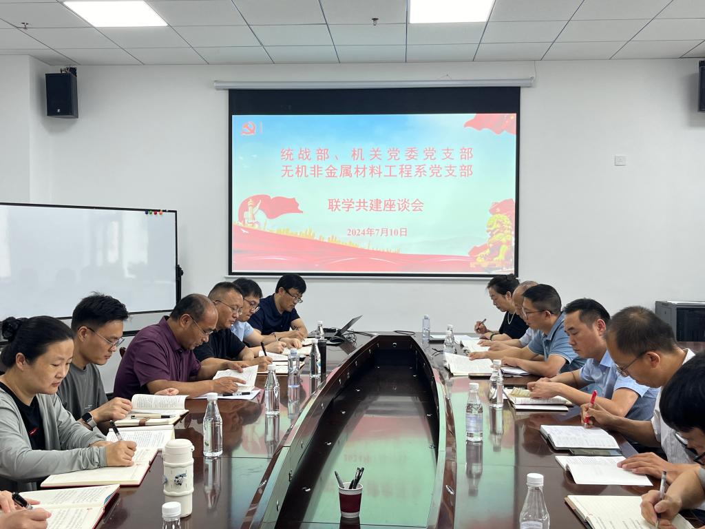 2024年7月10日下午,统战部、机关党委党支部与无机非金属材料工程系党支部在yl7703永利集团第一会议室开展了联学共建活动。统战部部长石松、机关党委副书记魏立明、yl7703永利集团党委书记王振军以及两个共建支部全体党员参加活动。本次活动的主题是《习近平关于全面加强党的纪律建设论述摘编》联学与党支部共建,联学活动由统战部部长石松主持。