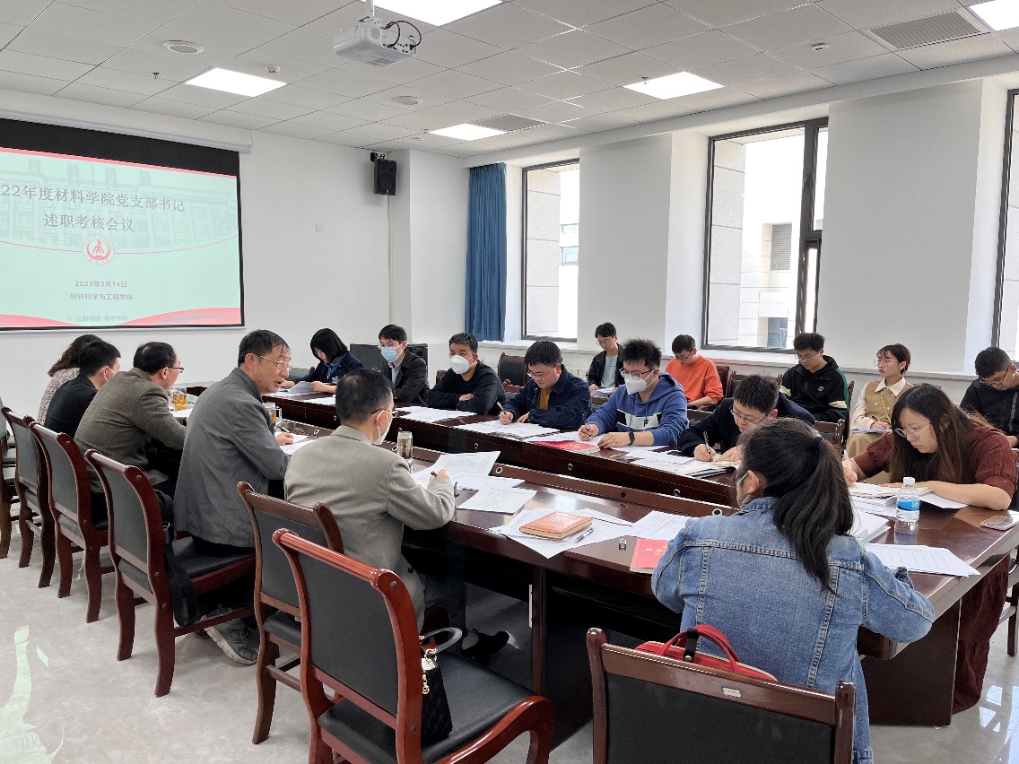 会上,材料科学与工程系党支部书记耿九光,材料成型及控制工程系支部书记郭亚杰,新能源材料与器件系党支部书记倪磊,研究生21级第一党支部书记滑维杰,研究生21级第二党支部书记董小倩,本科生20级及21级党支部书记张玮,本科生19级党支部书记史柯围绕2022年度抓党建工作情况、存在的问题、下一步工作思路等方面的工作进行了现场述职,其他7位支部书记进行书面述职。
