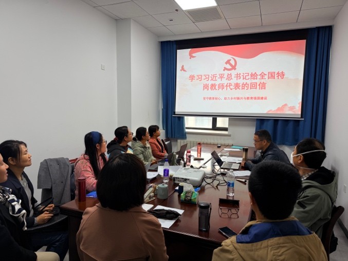 11月5日,新能源材料与器件系党支部在北校区致远大厦系办公室召开专题学习会,集体学习习近平总书记给全国特岗教师代表重要回信精神。活动由党支部宣传委员王卓同志领学。