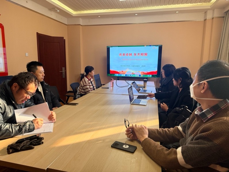 本次学习活动由支部书记倪磊主持,党员教师们首先回顾了南方科技大学校长、中国科学院院士薛其坤主讲的《追求卓越 矢志报国——在新征程上践行共产党员的初心与使命》专题党课报告,薛其坤院士从“初心如磐 使命在肩——共产党员的身份认同与时代责任”、“躬耕科研 心系家国——我的党员生涯与科学探索经历”、“接力奋斗 共创未来——为实现民族复兴贡献力量”三个方面,结合自身成长、求学、科研经历,深入阐述了新时代科技工作者如何将个人理想融入国家发展伟业,他以自己团队在量子反常霍尔效应实验发现过程中的艰苦攻关为例,生动展现了科研工作者十年磨一剑的执着精神。