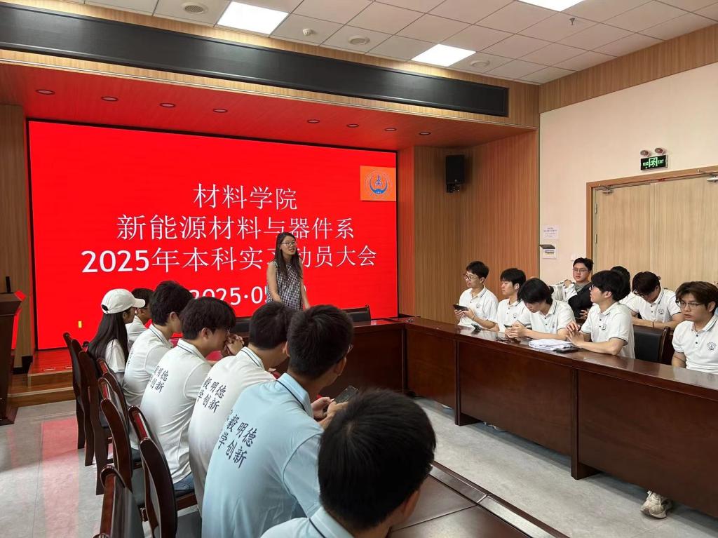 为保证新能源材料与器件专业本科生认识实习和生产实习的顺利开展, 5月20日上午,新能源材料与器件系于北校区致远大厦三楼会议室召开了本科生实习实践动员大会。会议由张研老师主持,带队老师郭婷婷、罗巧梅和鲍晓冰, 2022级和2023级全体本科生参加。