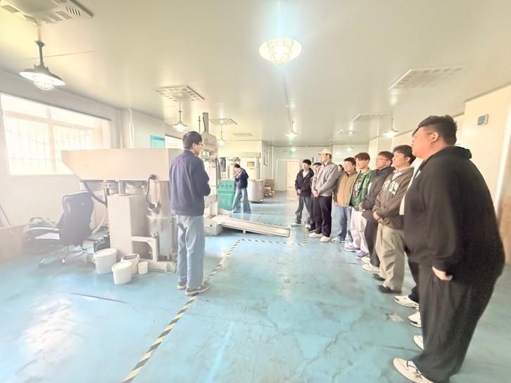 在生产区现场,同学们在企业技术骨干的带领下,深入了解了电子浆料、玻璃粉等产品的研发与生产工艺流程,并系统学习了相关产品的检测方法与质量控制标准。同学们通过近距离观摩生产线操作与实验室检测环节,对新能源材料与器件领域的技术应用形成了更直观、深入的认识。