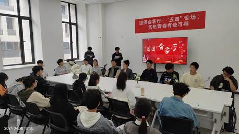 “青年如初春,如朝日,如百卉之萌动,如利刃之新发于硎。”105年以来,“爱国、进步、民主、科学”的五四精神在历史的长河中熠熠发光,将五四锻造成一枚徽章,戴在所有挺立时代潮头的中国青年胸前,激励着一代又一代中国青年书写着一曲曲“振兴中华”的青春壮歌。为纪念五四运动105周年,传承五四精神,材料学院依托“团团会客厅”青年服务实体阵地开设“五四”专场会客,4月30日上午,会客厅迎来了学院青马班的30余名共青团员,同时做客的还有学院团委书记马熠航和团委副书记刘帅。