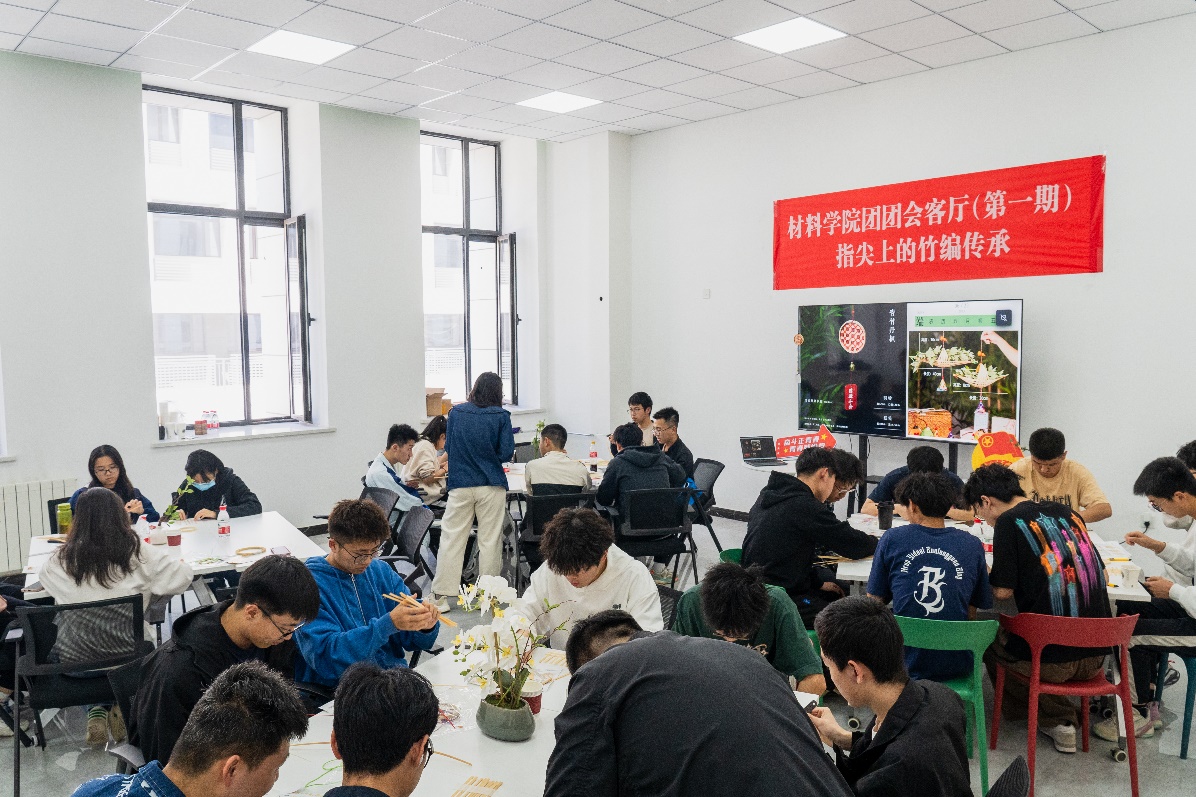 本次会客以“指尖上的竹编传承”为主题,让学院师生在一场沉浸式美育体验活动中展开互动交流。实践体验前,参加的师生围绕习近平总书记关于文化自信、非遗传承、青年观等重要讲话原文进行会前自学;随后由2023310211班班长高泽坤向参加活动的师生详细介绍了非遗竹编,并通过两个竹编实际制作过程和非遗传承的视频,生动展示了传统竹编工艺的六个流程,砍竹、破篾、修篾、染篾、编织、整形;活动最后,学院党委副书记张晓琳老师提到,“希望通过此次“团团会客厅”开门会客,给广大师生提供一个面对面交流的对话平台,能够让师生关系更近一步,为学生解答学习、工作中的困惑,帮助学院广大师生更快更好地彼此了解、共同成长。进一步实现“团团会客厅”的共建共用,通过靠好资源带来好影响,靠好影响带动好人气,推动“团团会客厅”建设提质增效。”