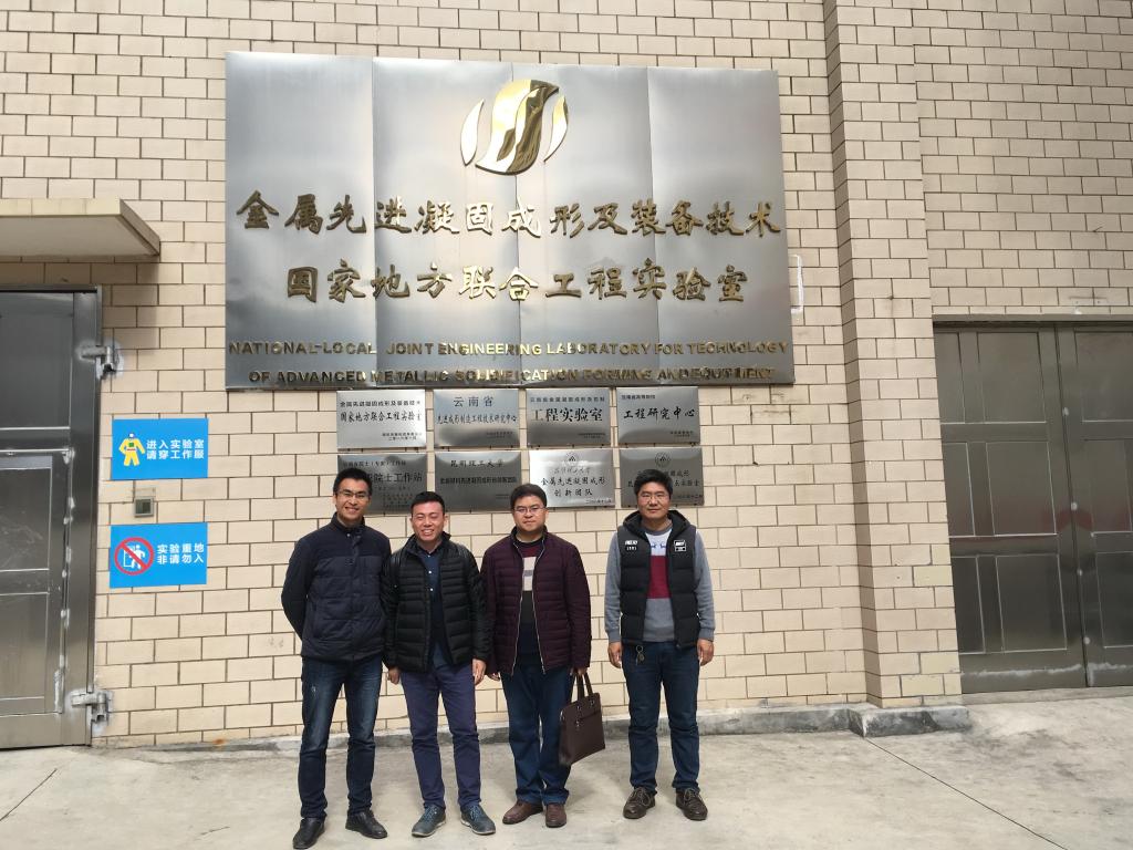 座谈会后,在昆明理工大学材料学院科技办公室主任谭军教授等陪同下我院教师代表参观了昆明理工大学新材料大楼及金属先进凝固成形及装备技术国家地方联合工程实验室。