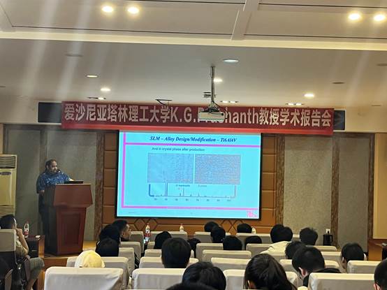 随后,Prashanth Konda Gokuldoss教授为我校师生作了题为“Alloy design for selective laser melting”的学术报告,报告由赵秦阳副教授主持,学院百余位师生及国际生参加并听取了报告。