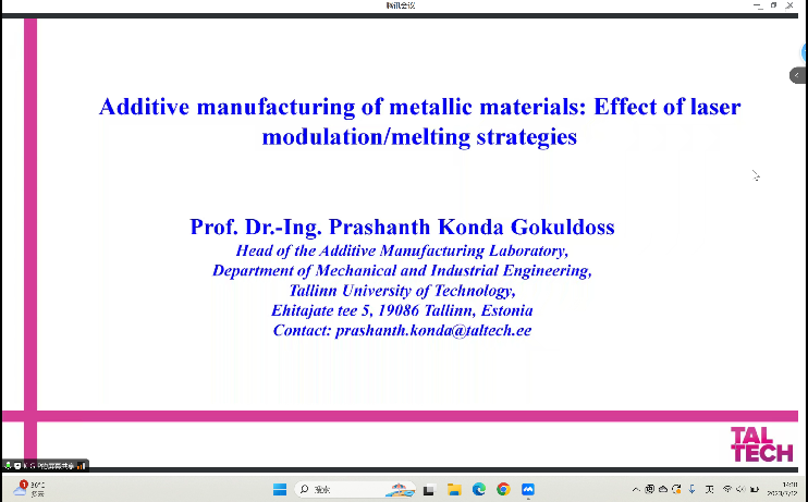 2023年7月12日14:00,应学院材料张凤英教授及袁战伟副教授邀请,来自塔林理工大学的Prashanth Konda Gokuldoss (K. G. Prashanth)教授为学院师生作了题为“金属增材制造”的在线学术报告。这是依托“中国-中东欧国家高校联合教育项目—中国-爱沙尼亚增材制造技术(3D打印)联合实训基地项目”和“科技部高端外国专家项目—增材制造高温合金性能调控”而开展的重要学术交流活动。学院院长肖月、副院长徐义库出席会议,报告由赵秦阳副教授主持,张凤英教授组织部分同学进行了会后讨论,近百名师生参加了线上交流。